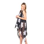 Medidas aproximadas: Largo total: 102 cm (desde el hombro a la punta más larga) / Largo lateral: 85 cm aprox / Ancho total: 85 cm (de sisa a sisa aprox).