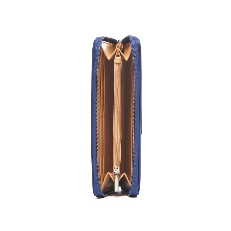 Múltiples compartimentos para billetes y tarjetas.