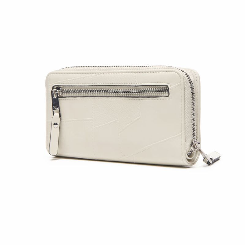 Interior con compartimentos múltiples para tarjetas, billetes y documentos.