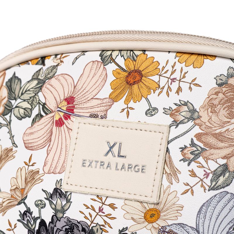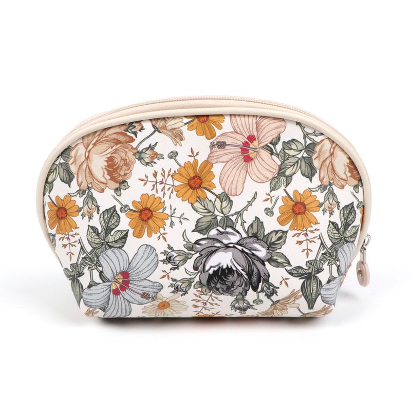 Estampa: Floral estilo vintage en tonos beige, mostaza, negro y rosa.