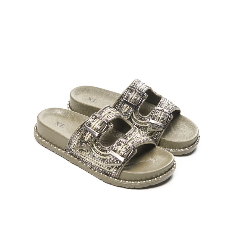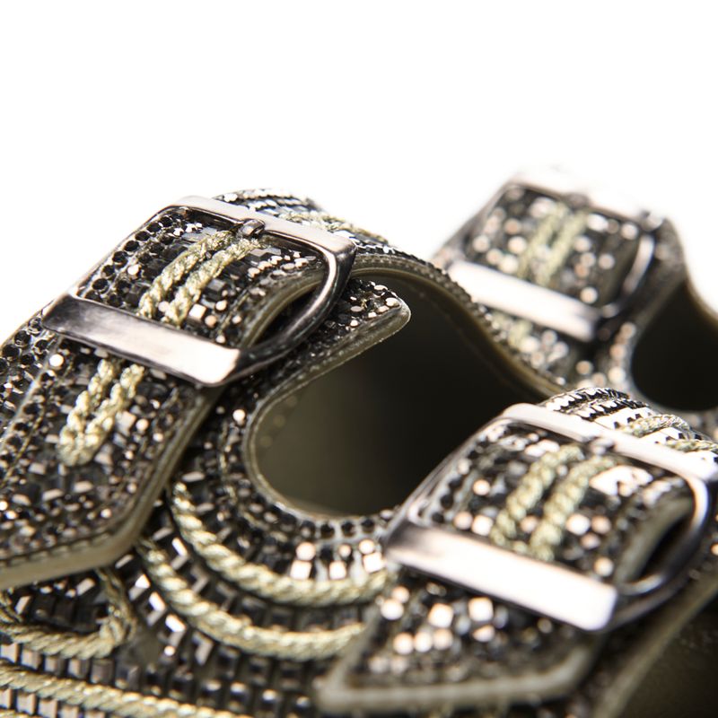 Material capellada: Sintético texturado con apliques brillantes y hebillas metálicas.