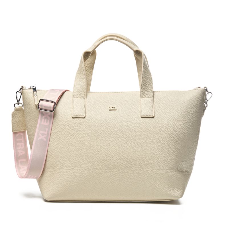 Diseño: Tote estructurado de líneas simples, formato amplio.