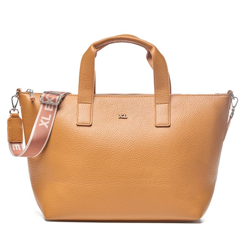 Diseño: Tote estructurado de líneas simples, formato amplio.