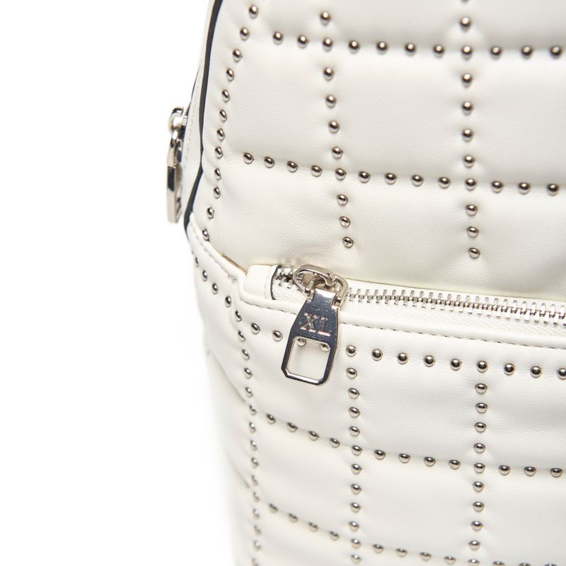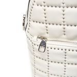 Interior forrado en tela gris con bolsillo interno con cierre.