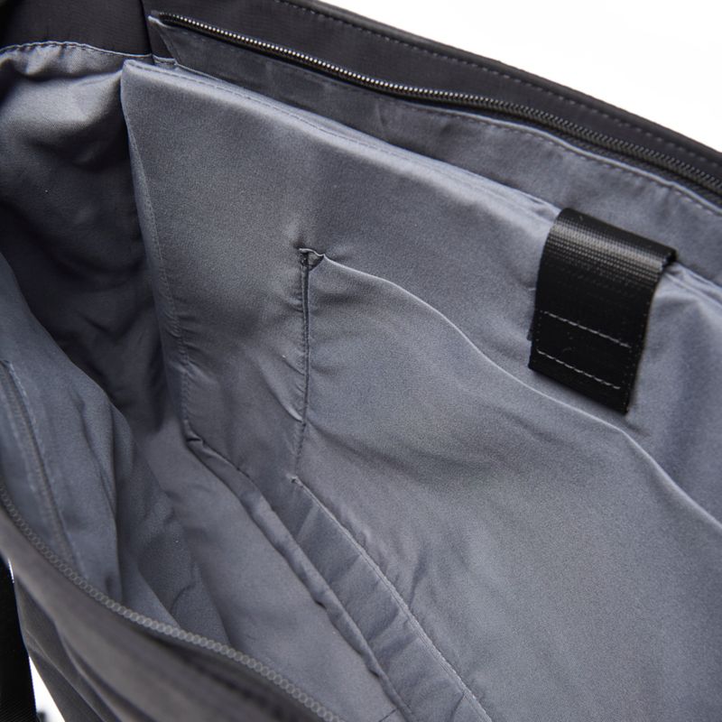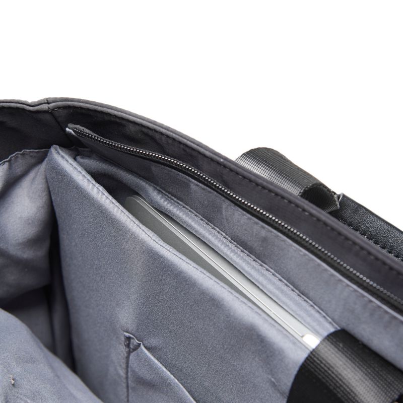 Compartimento interno acolchado para notebook con tira de sujeción.