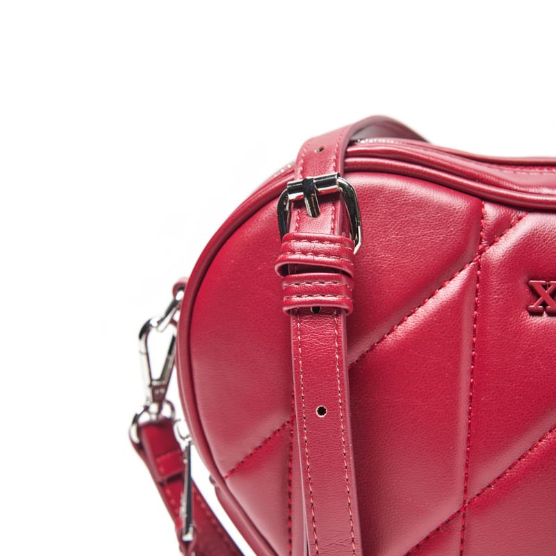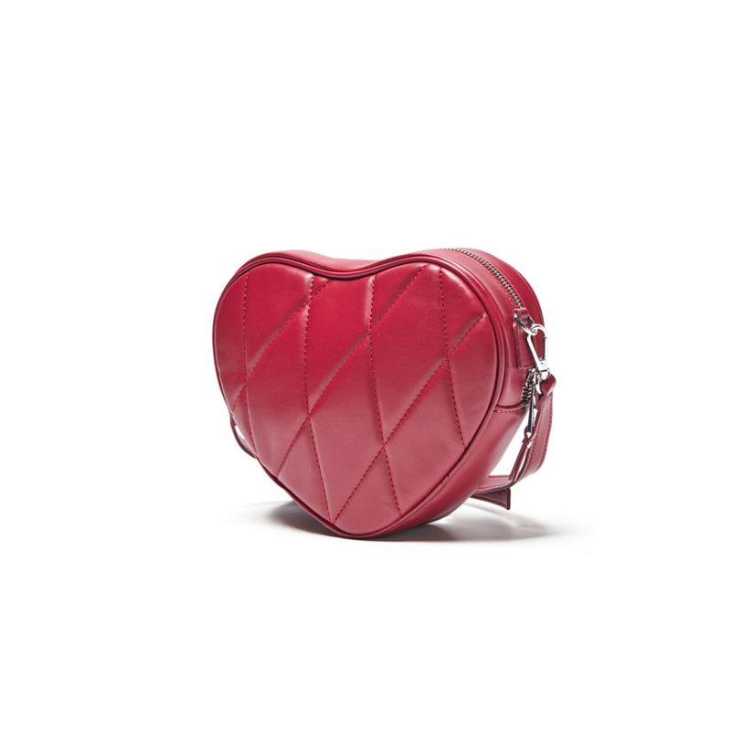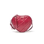 Formato corazón estructurado, acolchado frontal con costuras diagonales, herrajes plateados y estética romántica pero urbana.