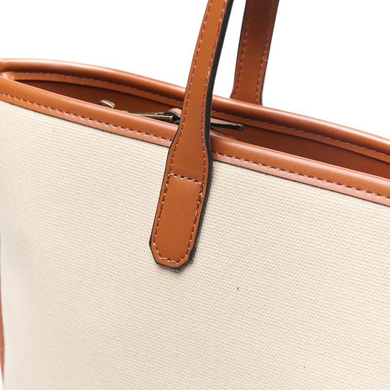 Detalles: Bordes y manijas en color suela.