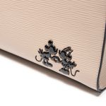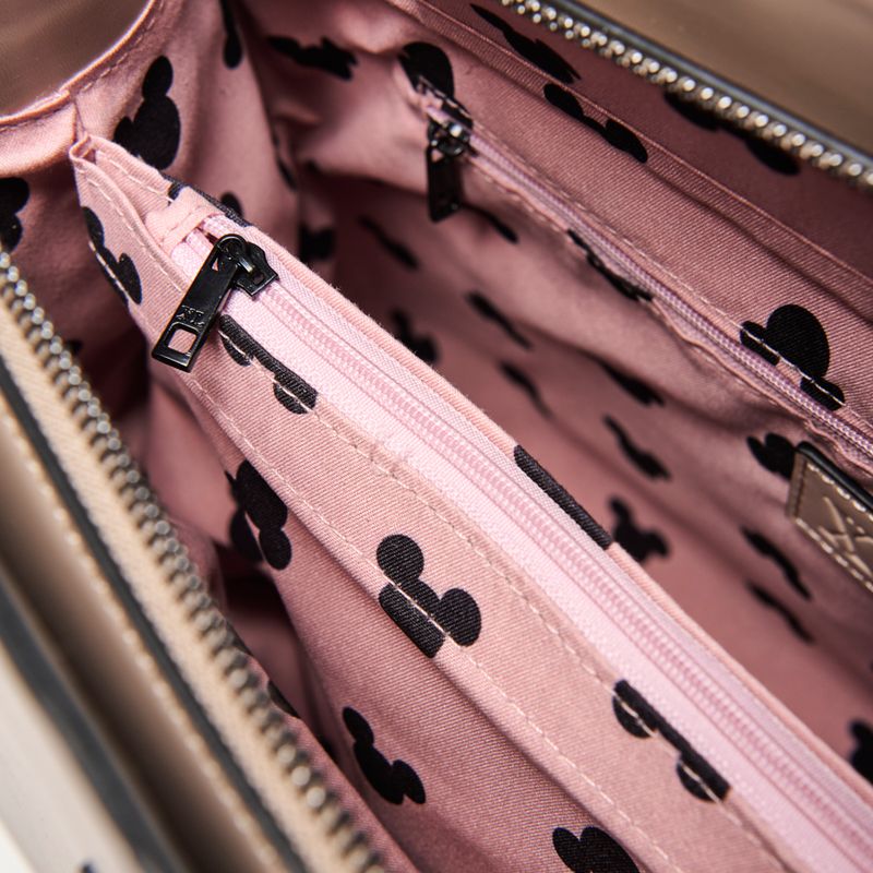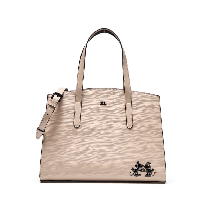 Aplique metálico de Mickey y Minnie en el frente.