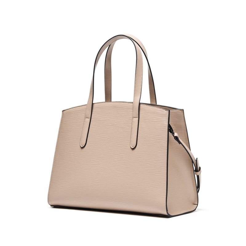 Cartera con asas cortas para llevar al hombro.