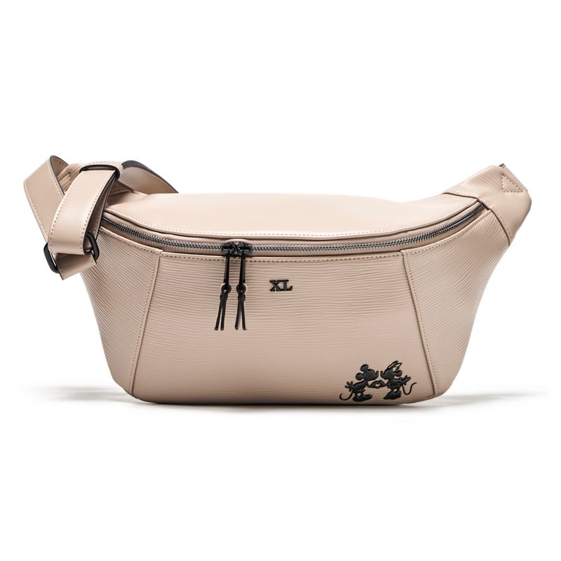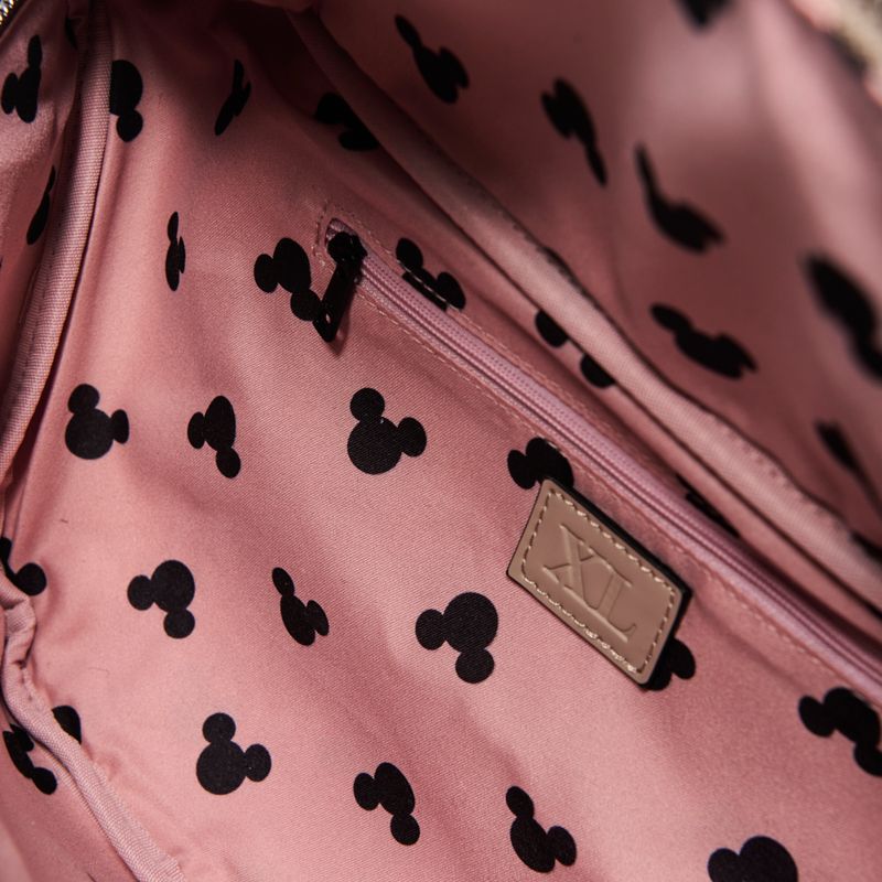 Aplique metálico de Mickey y Minnie en el frente.